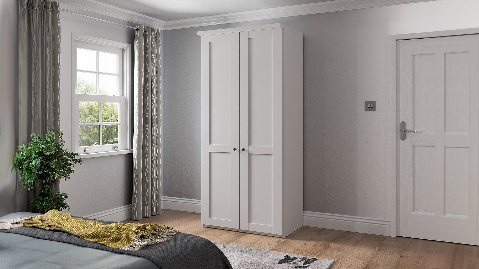 Im Inneren bietet jeder Schrank zwei Einlegeböden und eine robuste Kleiderstange pro Fach, die eine übersichtliche Aufbewahrung Ihrer Kleidung garantiert. Optional sind Kranzleisten mit oder ohne LED-Beleuchtung erhältlich, die das Design des Schranks aufwerten und in ein stimmungsvolles Licht tauchen.