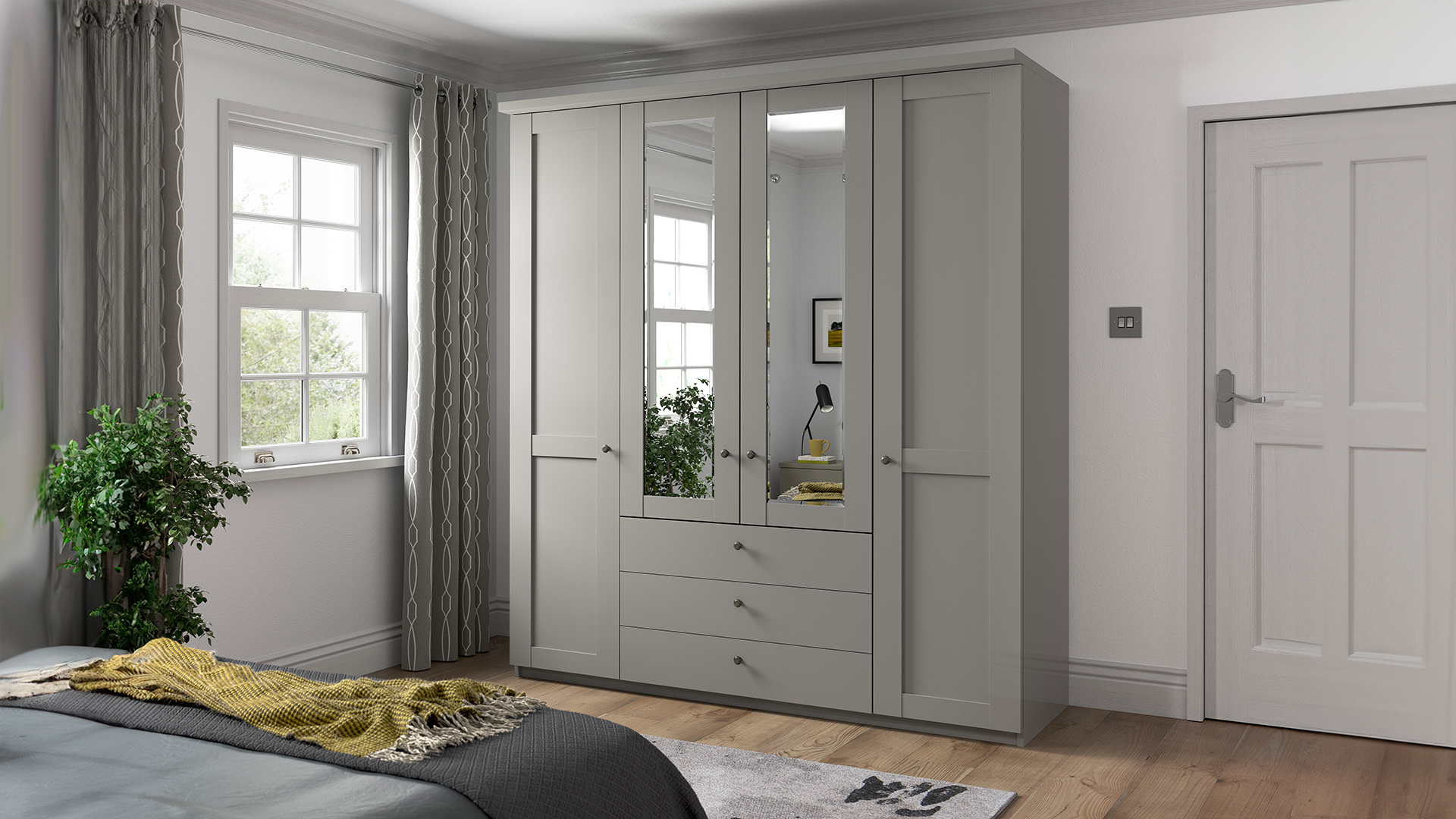 Die Drehtürenschränke der MARLOW-Serie bieten eine breite Auswahl an Größen, beginnend bei ein- bis zu acht-türigen Varianten. Die Schwebetürenschränke sind in 4 Breiten erhältlich. Für besonderen Stauraum sorgen die Funktionsschränke mit 3 bis 6 Auszügen in verschiedenen Breiten. Damit passen sich die Schränke problemlos an jede Raumgröße an. Die Fronten sind in verschiedenen Ausführungen erhältlich, darunter Kieselgrau, Weiß, Graphit und Salbeigrün-Dekor. Für eine besonders stilvolle Optik können die Schränke mit Kristallspiegeltüren ergänzt werden, die für mehr Helligkeit und Weite im Raum sorgen. Alle Drehtürenschränke verfügen über gedämpfte Scharniere, die ein sanftes und leises Schließen der Türen ermöglichen.