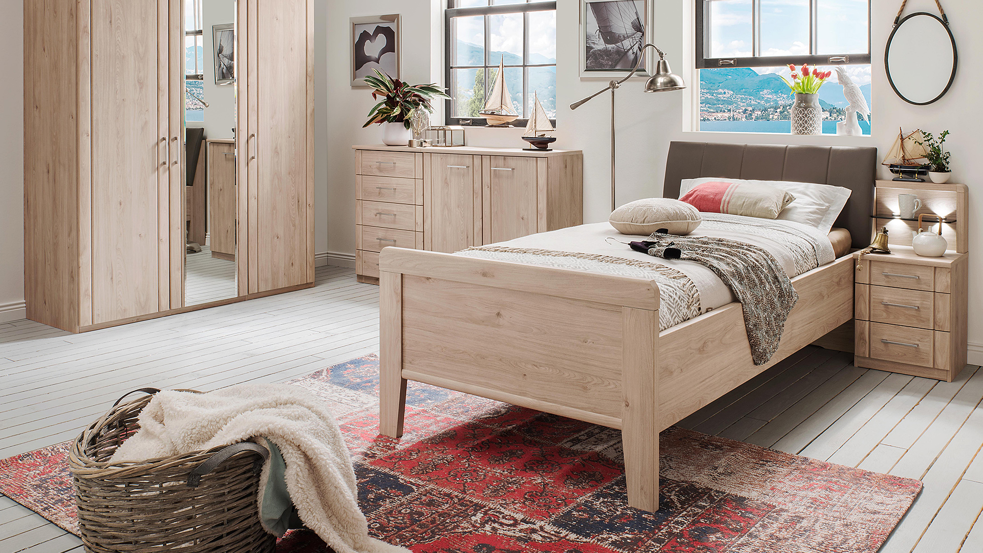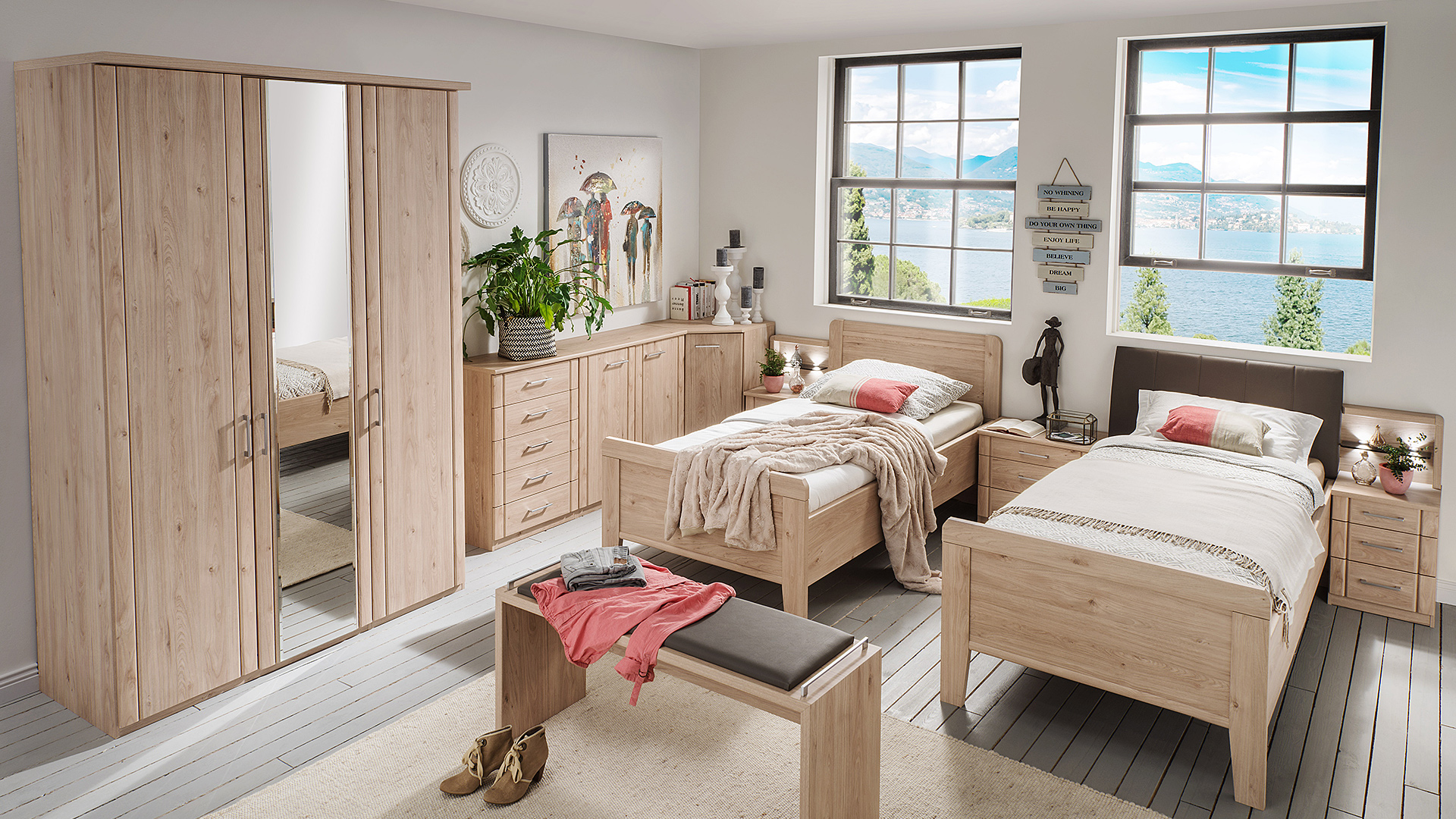 Ein Schlafraum mit behaglicher Atmosphäre ist ideal, um sich wohlfühlen zu können. Die lebendige Optik von sägerauer Eiche haben wir als pflegeleichte Variante überzeugend echt nachgebildet und in diesem Programm einfließen lassen. Sein natürlicher Charme schenkt Ihnen ein wohliges Raumgefühl, seine Funktionalität erstklassigen Komfort.