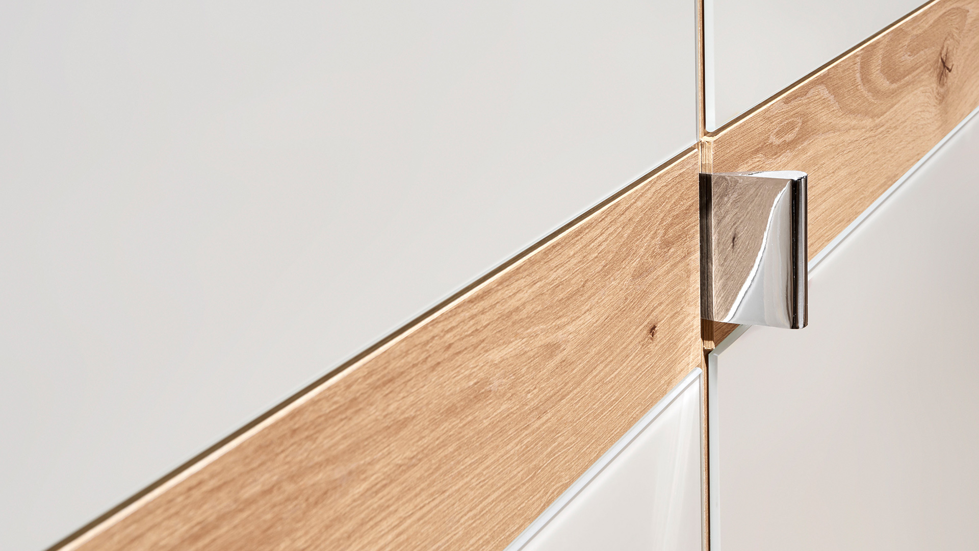 Ein weiterer Hingucker sind die Passepartout-Rahmen und Kranzleisten, die wahlweise ohne oder mit Beleuchtung erhältlich sind. Auch bei den Passepartout-Rahmen bestimmen Sie – mögen Sie lieber akzentuierte LED-Spots oder die umlaufende LED-Beleuchtung, die Ihren neuen Schrank zusätzlich elegant einrahmt?