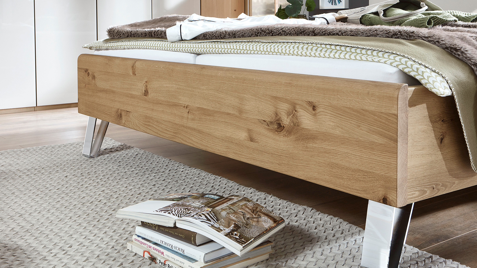 Ein Unterbau-Bettkasten oder Großraum-Bettschubkasten schafft zusätzlichen Stauraum und verbindet mit den Lattenrosten inklusive Springauf-Beschlag Komfort und Ordnung in einem.