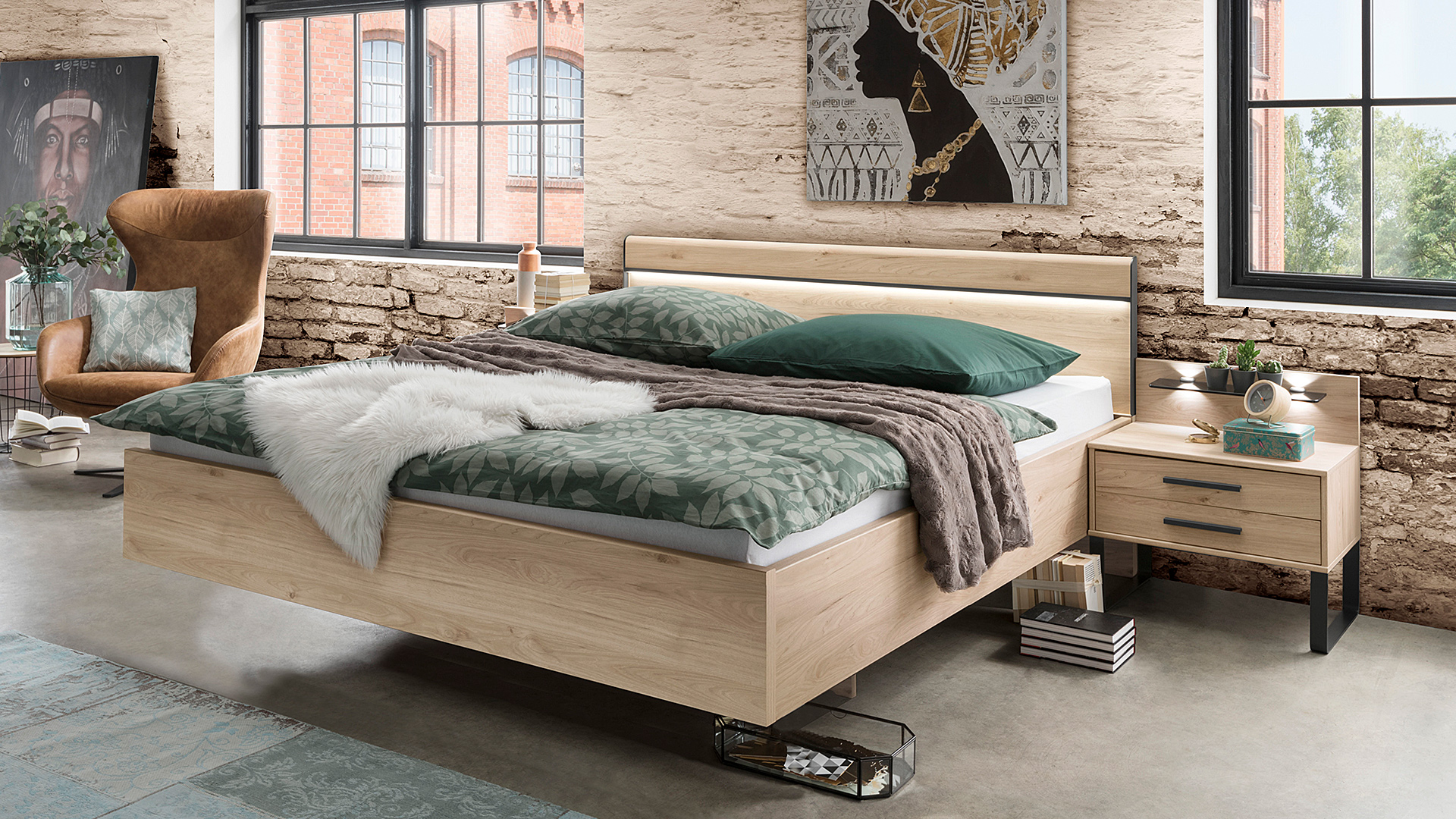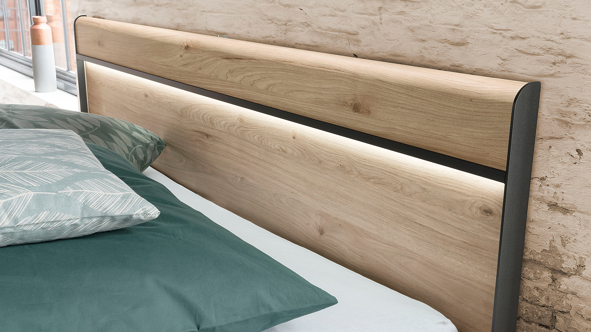 - Indirekte LED-Beleuchtung für Holz-Kopfteil und Fußteil