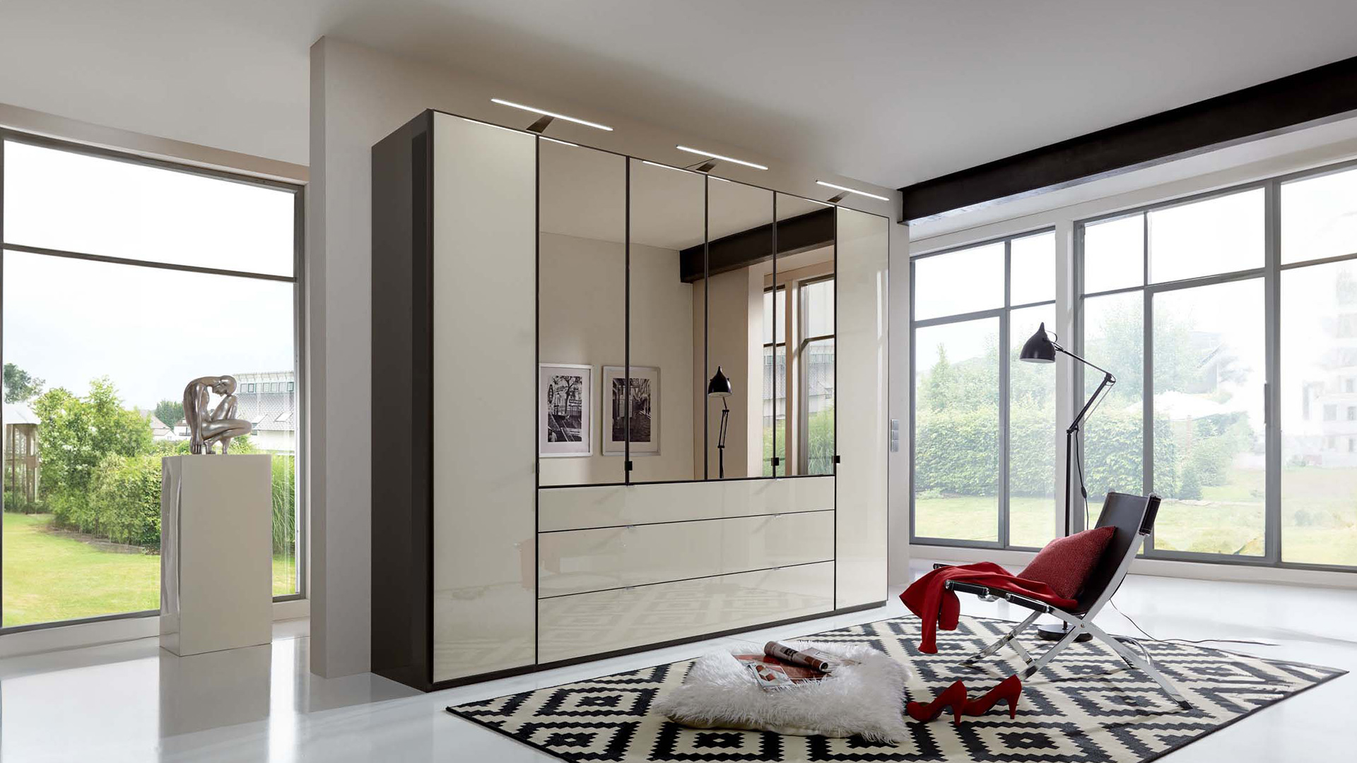 Das Programm EASTSIDE besticht mit seinem urbanen und schicken Design. Das Angebot umfasst sowohl klassische Dreh-, als auch attraktive Funktionstürenschränke. Beide Varianten erhalten Sie in acht unterschiedlichen Breiten von 50 cm bis 400 cm. Bezüglich des Aussehens dürfen Sie zwischen fünf Korpusfarben und verschiedenen Frontfarben wählen. Darüber hinaus gibt es, je nach Korpusfarbe, unterschiedliche Aufleistungen. Die Fronten gestalten sich wahlweise aus Holztüren im Korpusfarbton oder Glastüren in geschmackvollen Farben. Verschaffen Sie sich den Durchblick, indem Sie sich für eine Kombination mit Parsol-Bronze-Spiegeltüren entscheiden! Maximalen Stauraum bieten unsere Eckschränke, vollausgebaut oder begehbar. Wenn Sie wünschen, können Sie dieses Drehtürenprogramm auch mit unserem Schwebetürenprogramm WESTSIDE kombinieren!