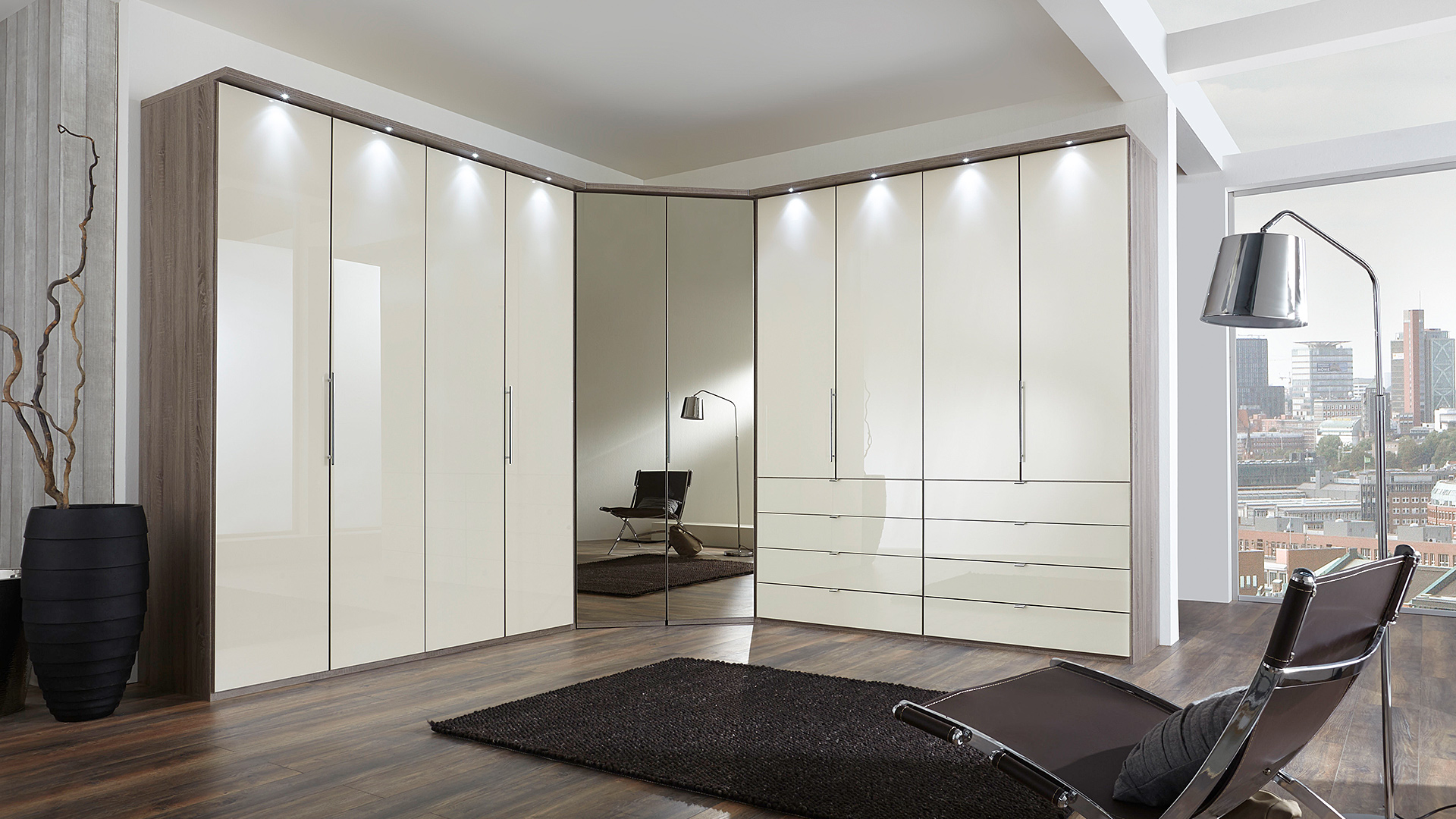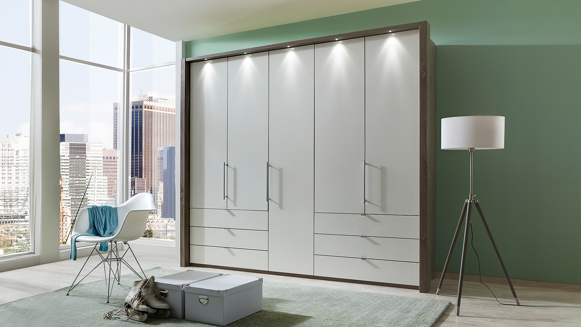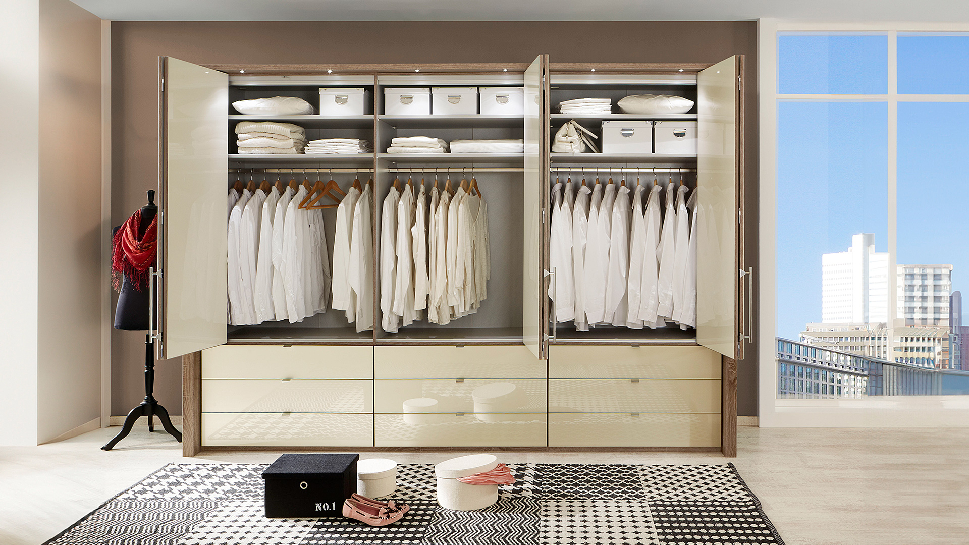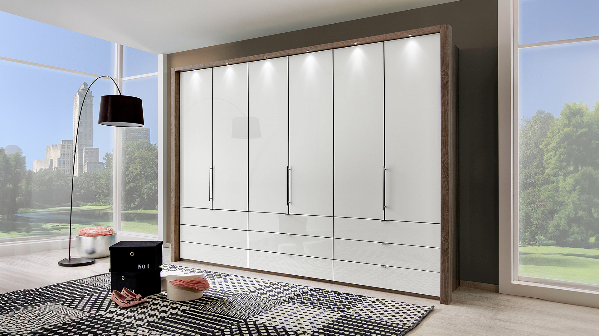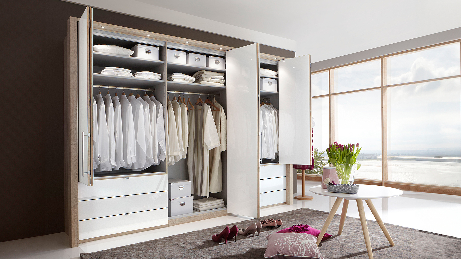 - Panorama-Funktionsschränke mit Falttüren und Schubladen