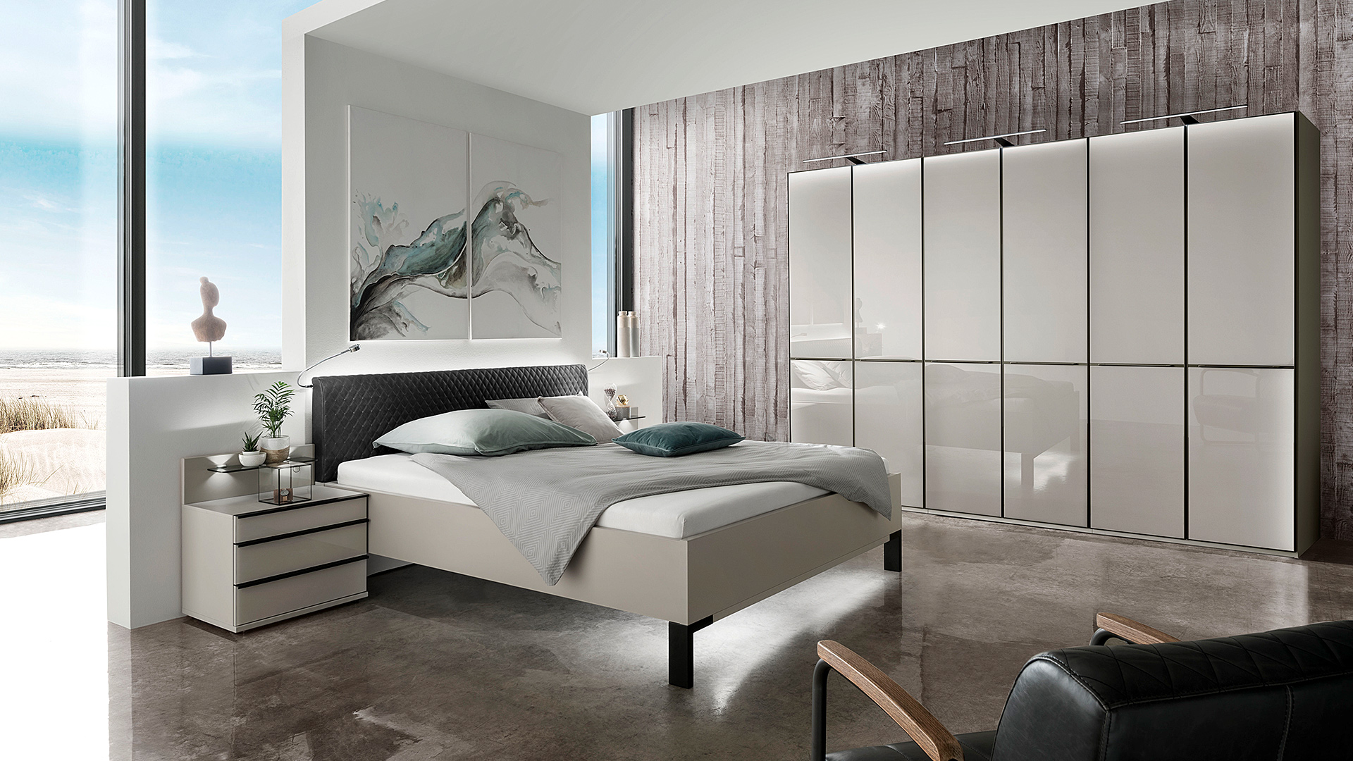 Neben den vielseitigen Schrankvariationen und Futonbetten der Serie MONTREAL vervollständigen Sie Ihren Schlafbereich dank praktischer Beimöbel wie Schubkästen-Kommoden mit vier bis sechs Auszügen, gepolsterten Ankleidebänken oder Hänge- und Wandspiegeln auf stilvolle Weise.