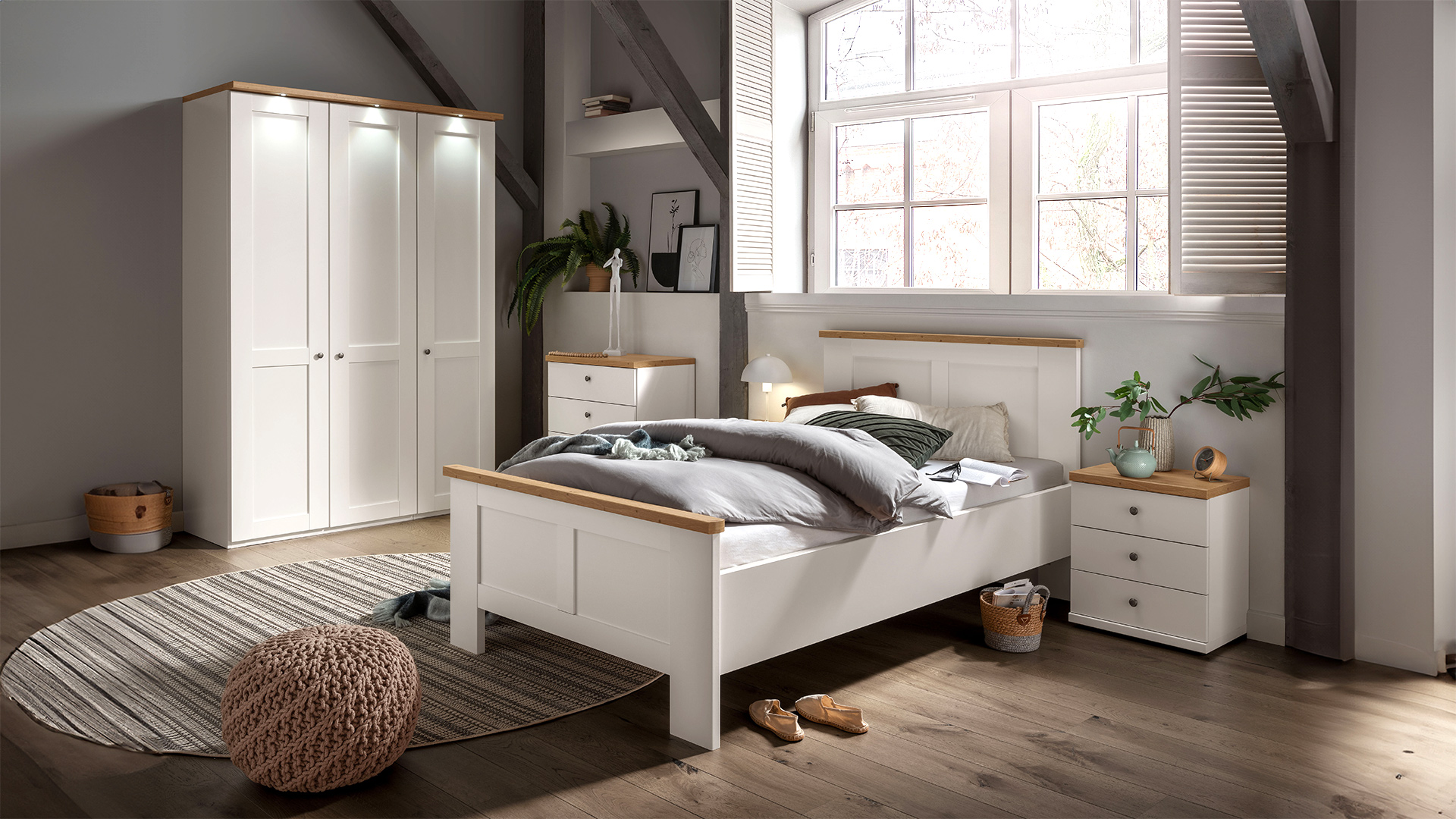 - Lamellen in Bianco-Eiche-Nachbildung oder im Korpus-Farbton