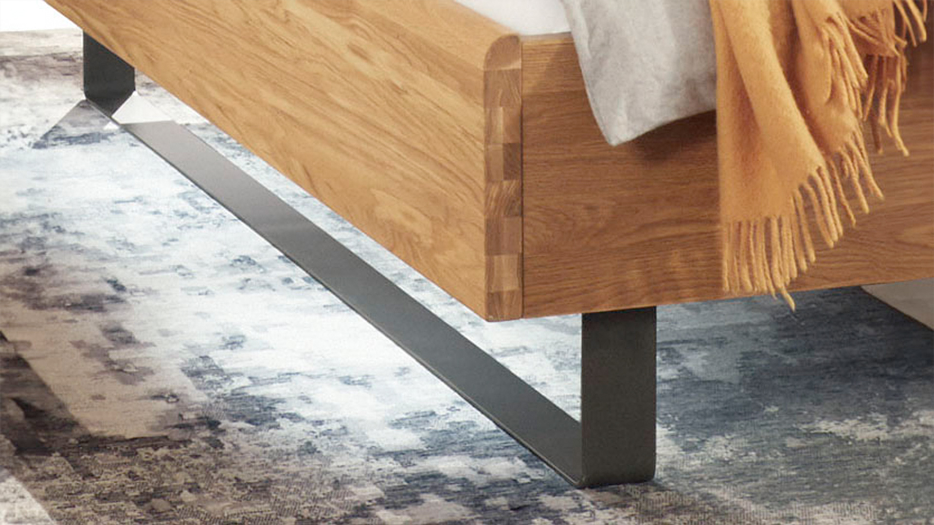 Passend dazu können Sie zwischen verschiedenen Nachtschränken mit massiver Front wählen – mögen Sie lieber die schwebende Variante, stehend oder mit den modernen Kufen in Schiefer? Wählen Sie zwischen einem oder zwei Auszügen bei den schwebenden Nachtschränken und zwischen 2,5 oder drei Auszügen bei den Stehenden. Die Nachtschränke mit Kufen haben zwei Auszüge. Passend dazu können Sie ein Paneel mit Rauchglasboden kombinieren, auch hierfür gibt es eine passende Beleuchtung.