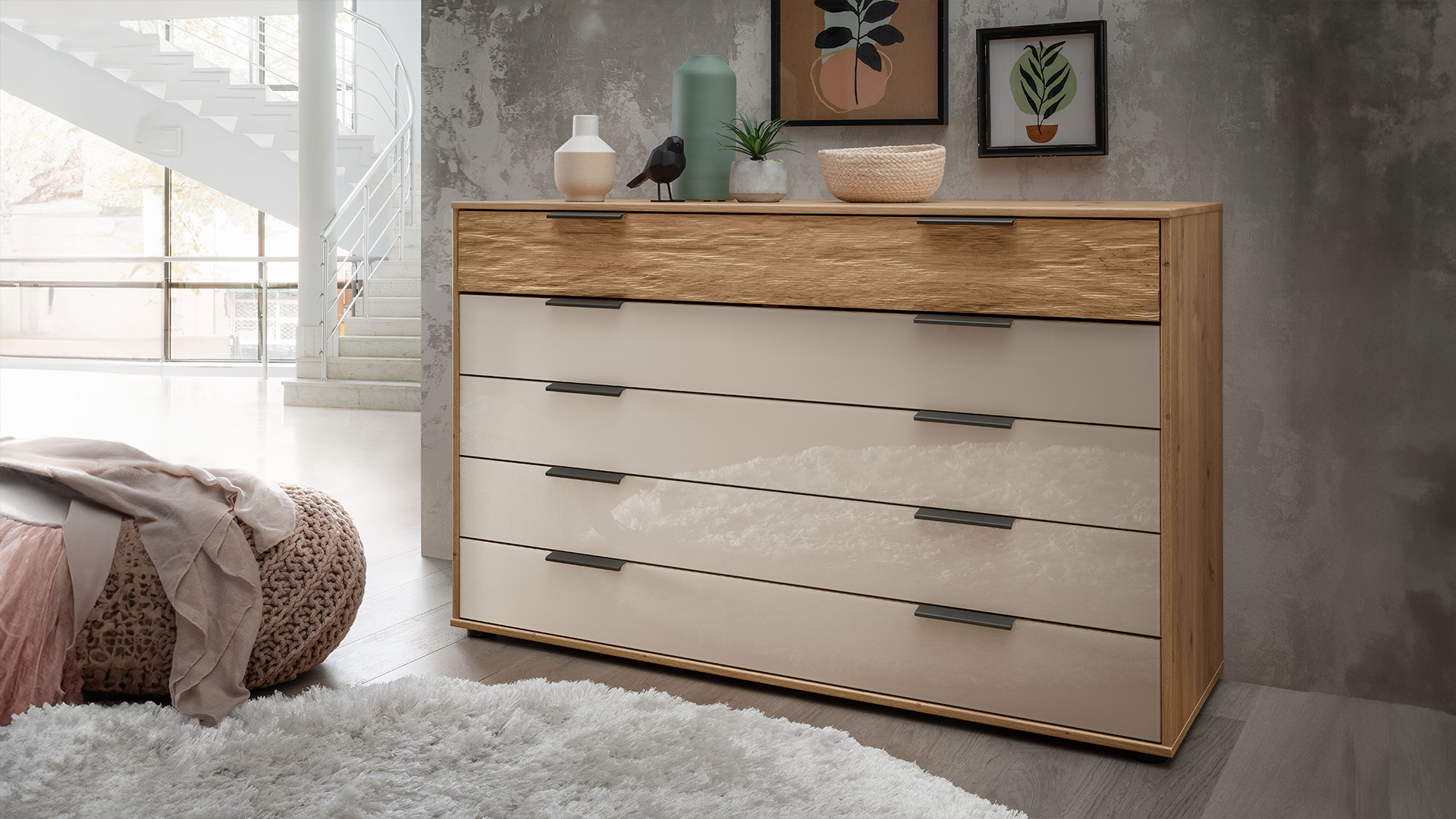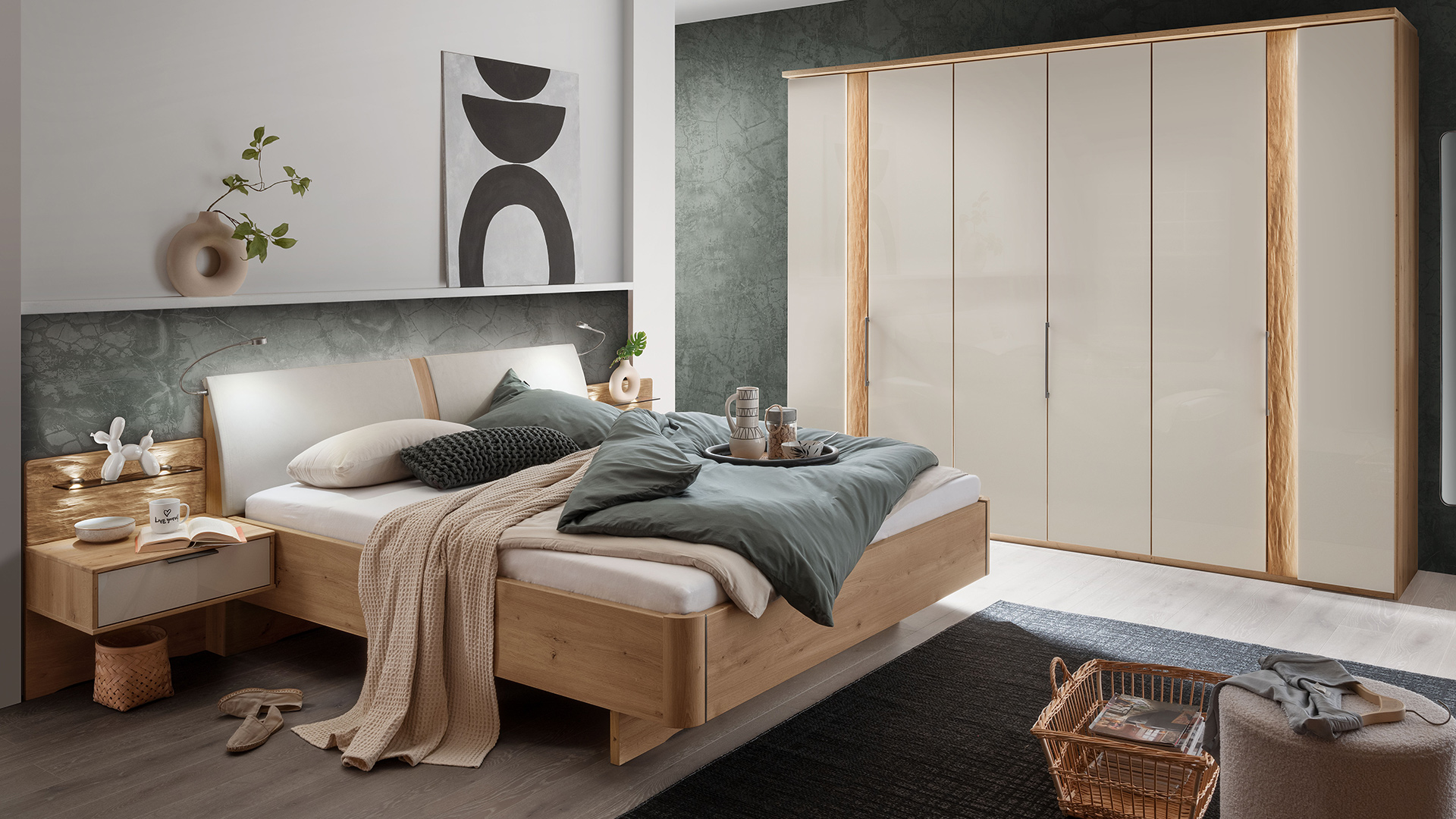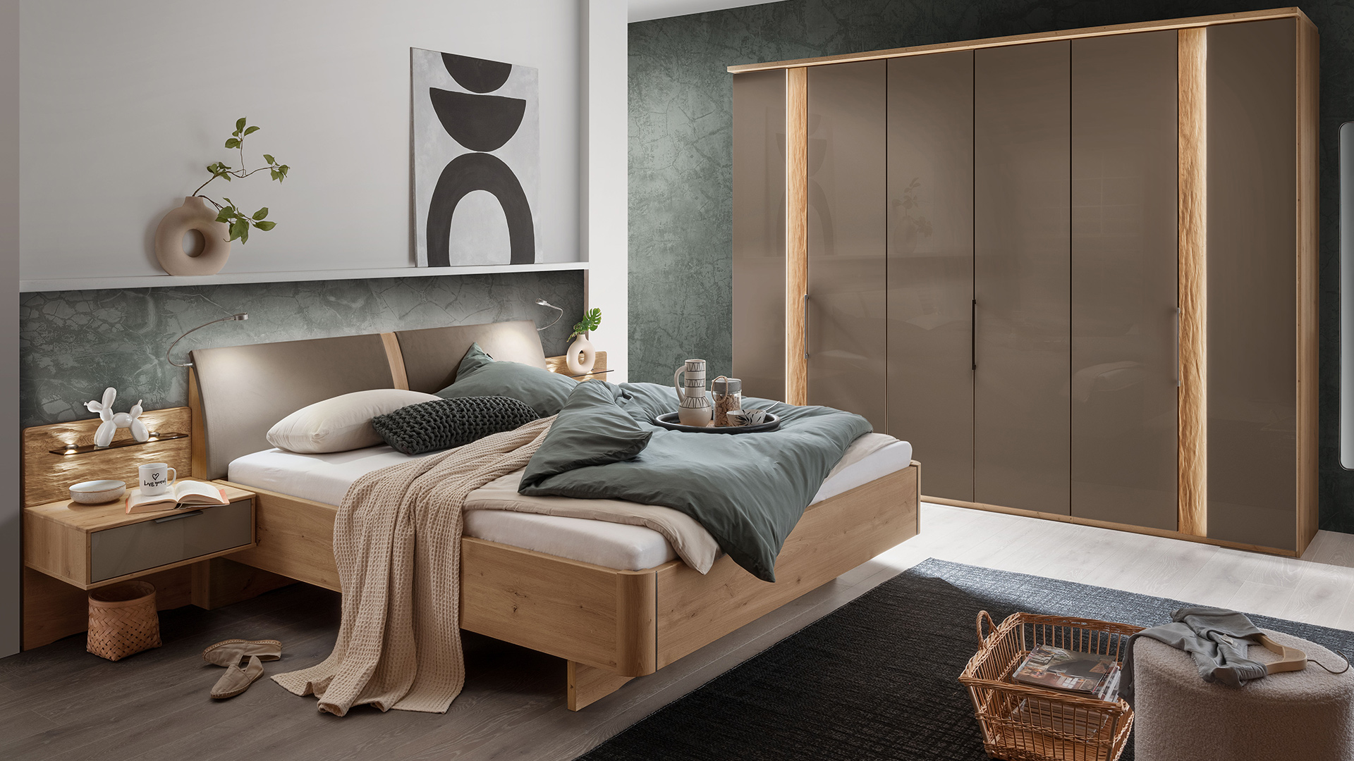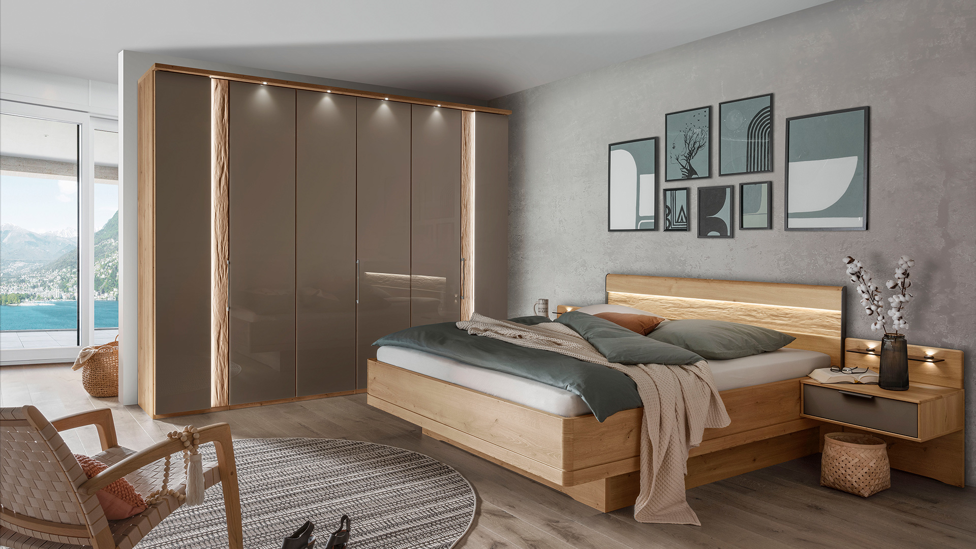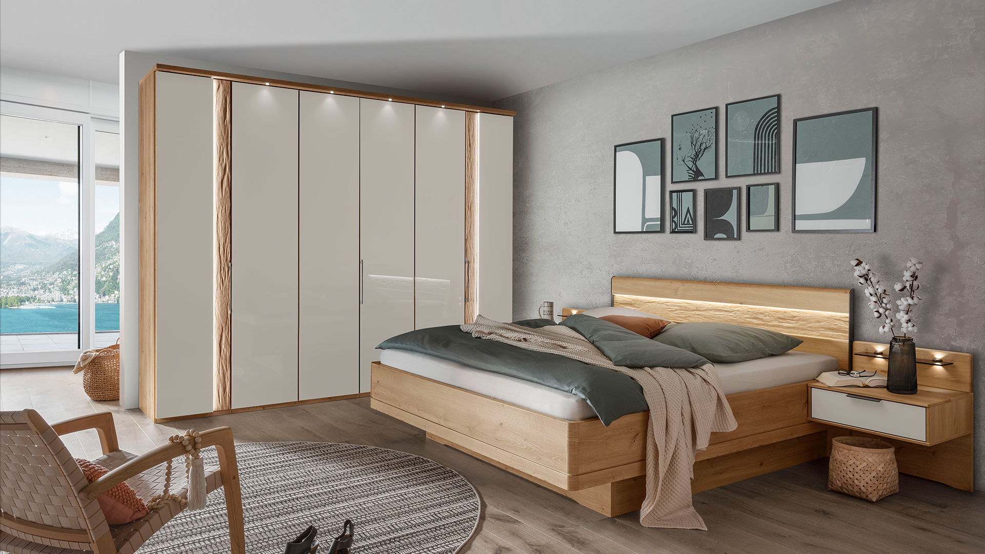 Mit VANCOUVER gestalten Sie ein Schlafzimmer, das nicht nur durch seine zeitlose Eleganz, sondern auch durch die Verwendung hochwertiger Materialien überzeugt. Die Kombination aus teilmassiven Hölzern, modernen Glaselementen und stilvollen Designaußentüren macht dieses Programm zu einer außergewöhnlichen Lösung für anspruchsvolle Wohnräume.