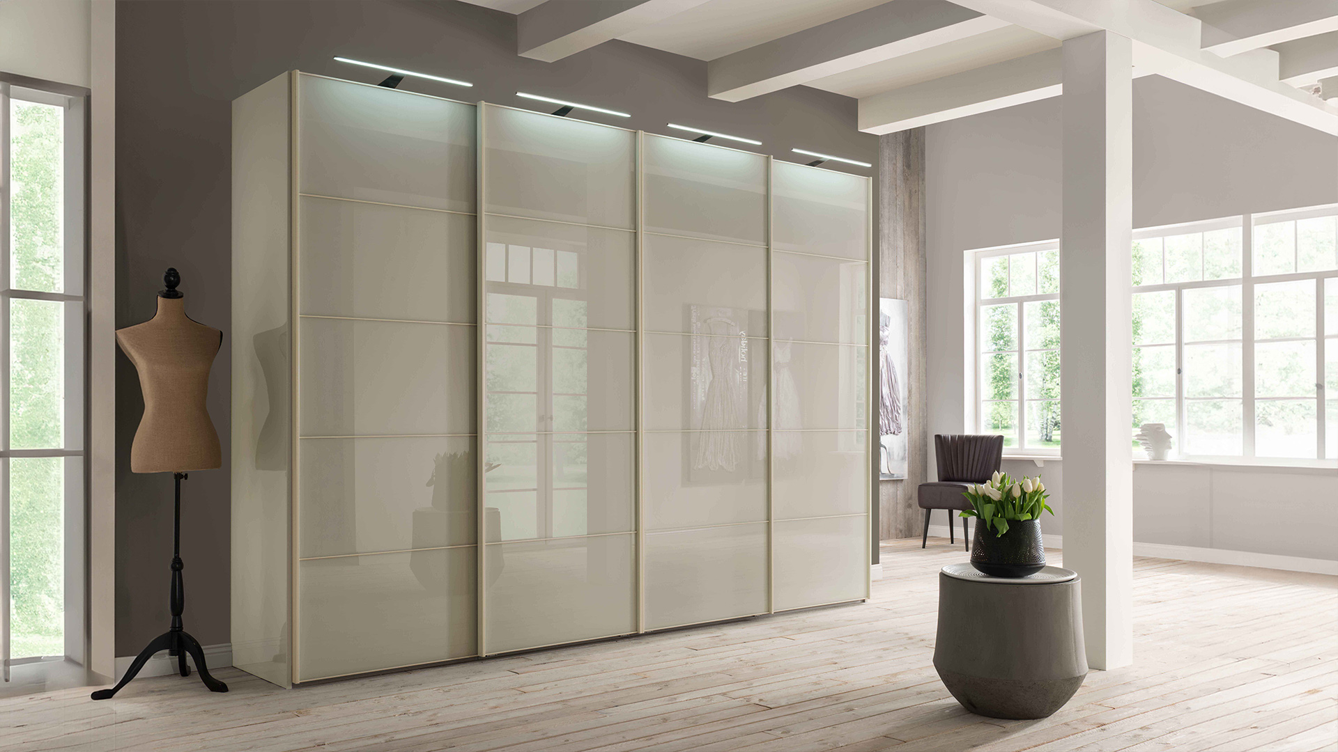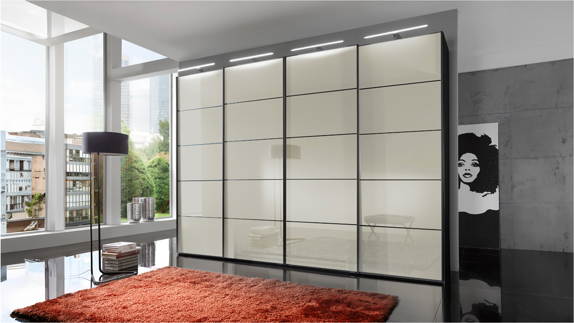 - Schwebetürenschränke in 8 Breiten und 2 Höhen