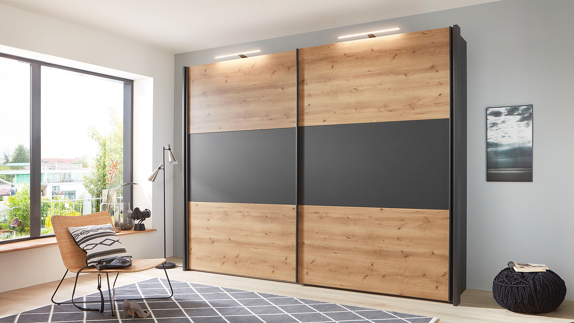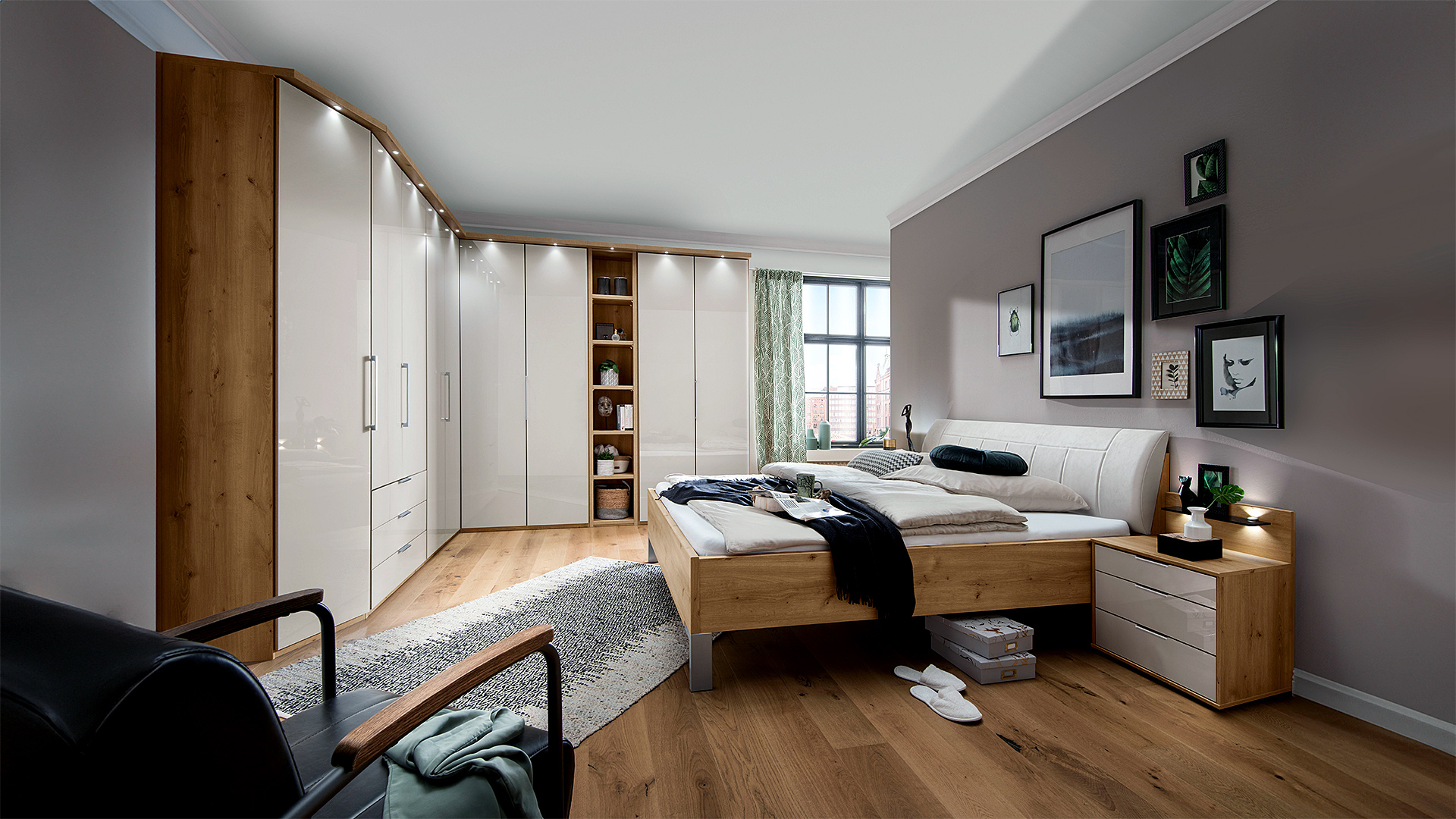 Neben dem Bett ist der Schrank bzw. das Schranksystem das prägende Schlafzimmermöbel. Darum legen wir auf unser Angebot an hochwertigen Schranksystemen besonderes Augenmerk. Unterschiedlichste Innen-Konfigurationen, Fronten, Farben und Materialien sorgen hier für eine breite Auswahl für alle, die gezielt nach einem Schranksystem „Made in Germany“ suchen.