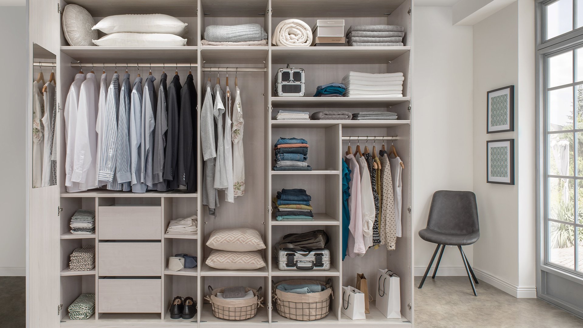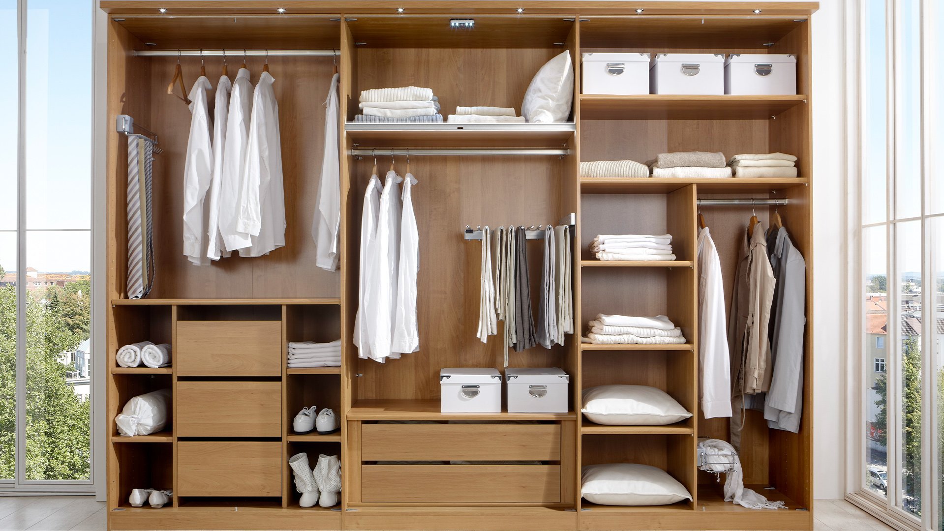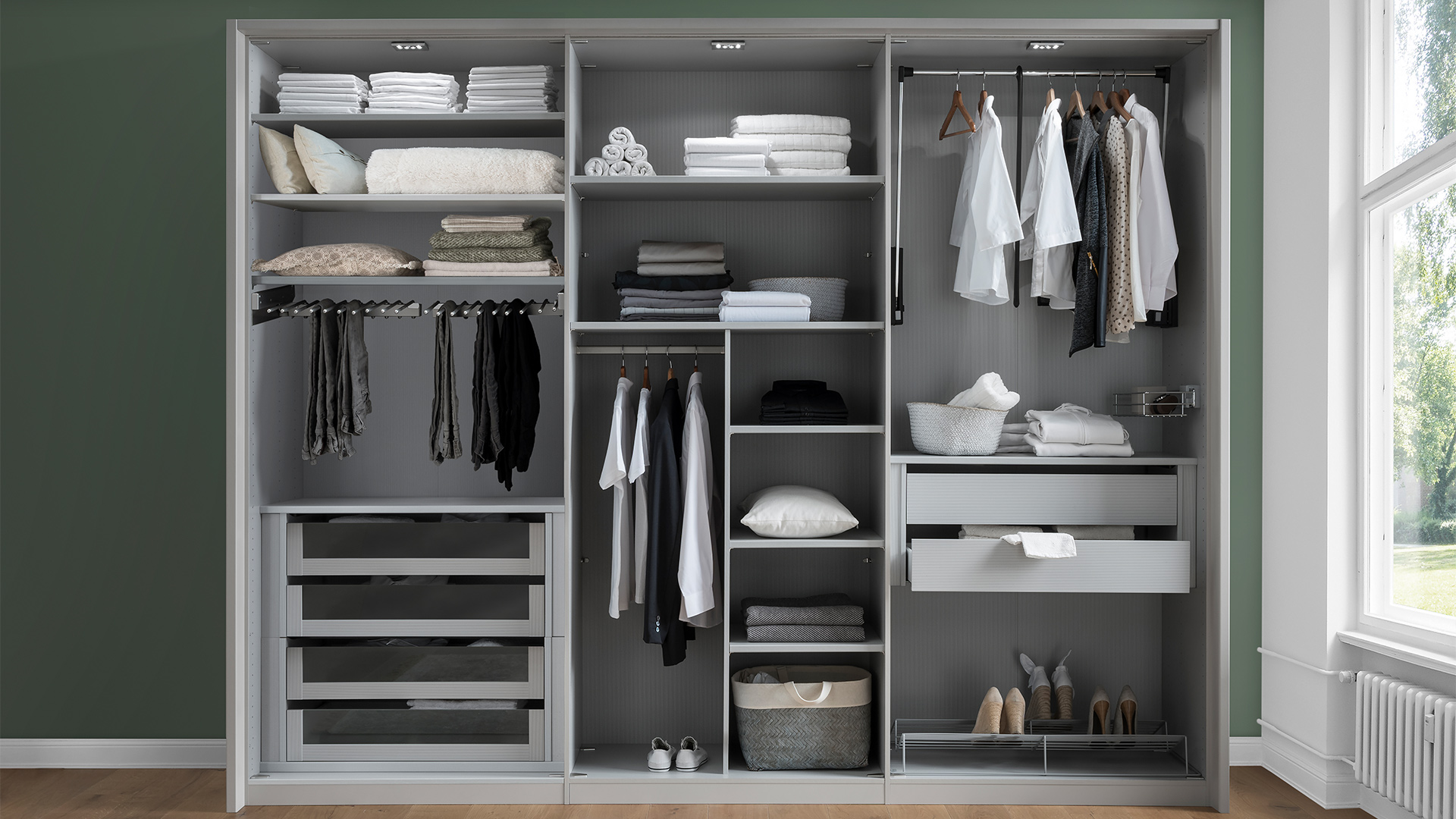 Entdecken Sie unser umfangreiches Zubehörprogramm für maßgeschneiderte Lösungen in Ihrem Möbelstück. Mit den Serien Erle-Nachbildung, Treeline und Streifendekor Silber-Grau bieten wir Ihnen durchdachte Elemente, die Funktionalität und Design vereinen. Von praktischen Inneneinteilungen über elegante Innenspiegel bis hin zu praktischen Gürtelauszügen, Krawatten- und Hosenhaltern – bei uns finden Sie das passende Zubehör, um Ihre Möbel noch funktionaler und stilvoller zu gestalten. Optimieren Sie Ihre Aufbewahrung mit Lösungen, die den Unterschied machen.